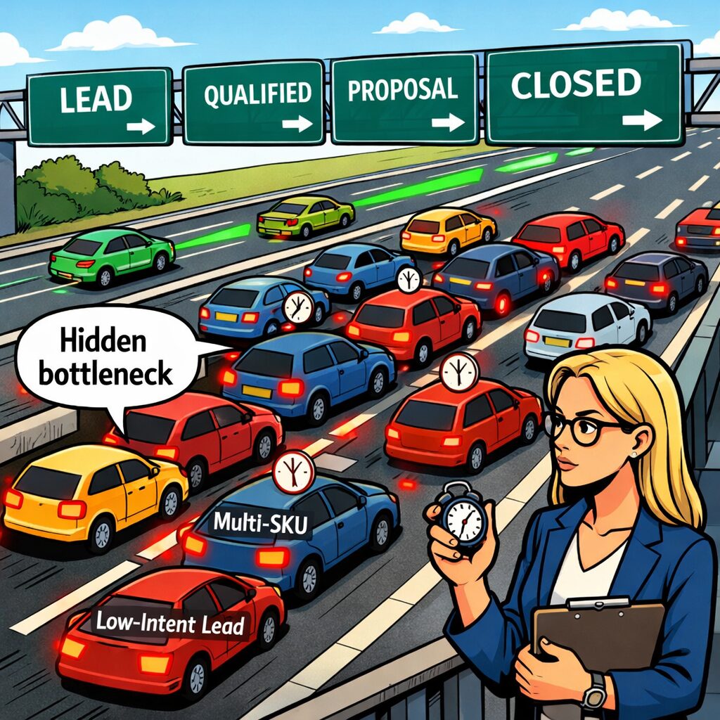 If multi-SKU orders take twice as long to close, you might restructure your pitch, or spin off a lighter package to speed up close rates.